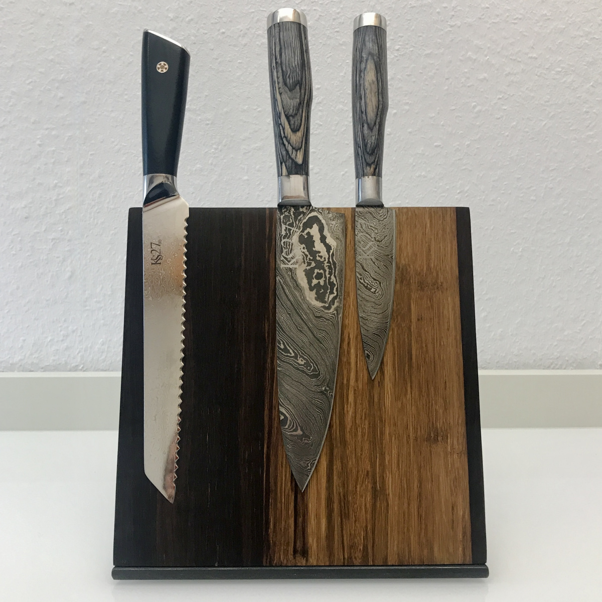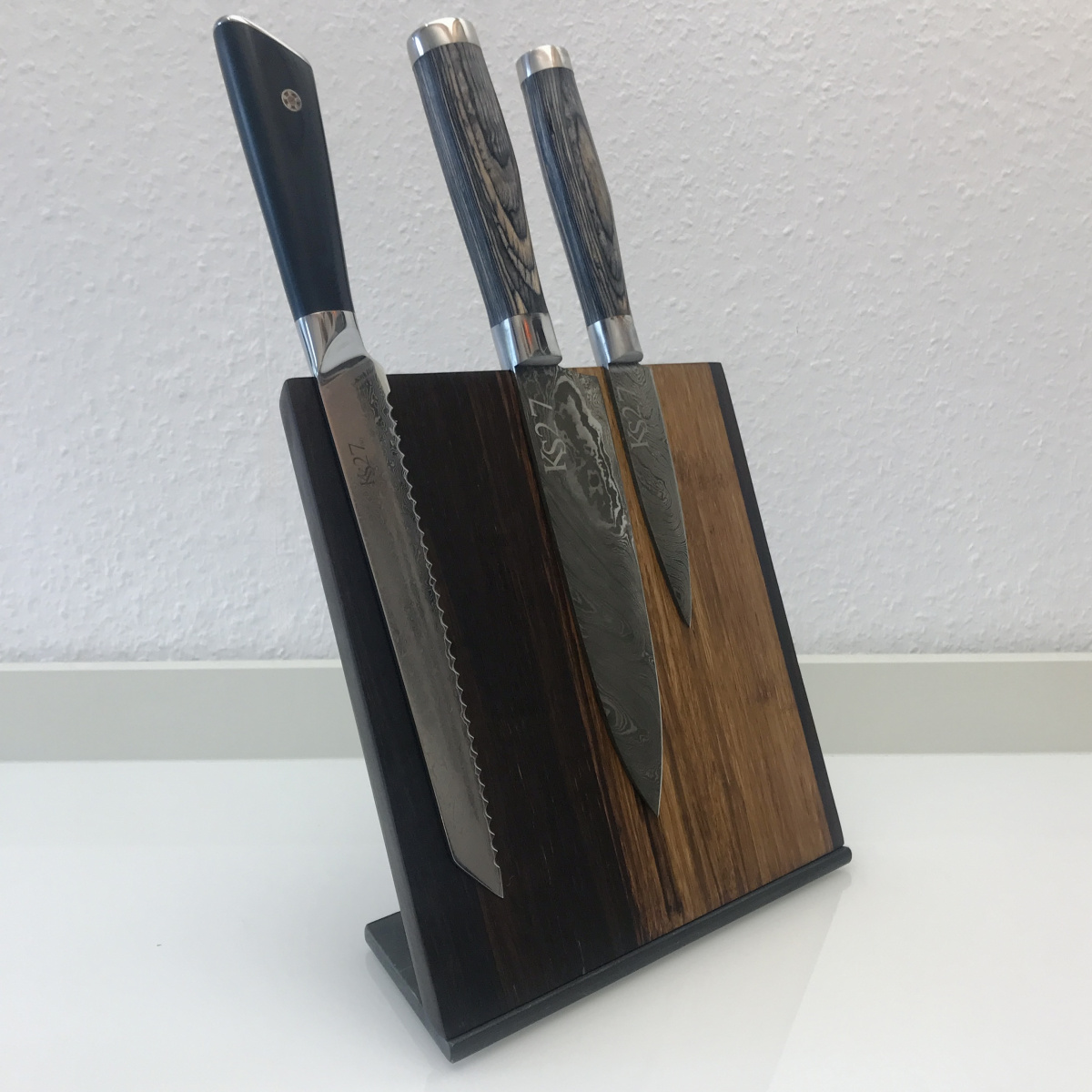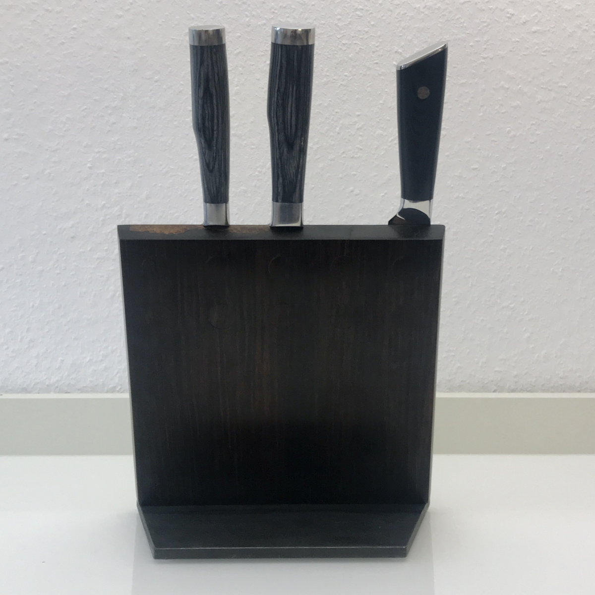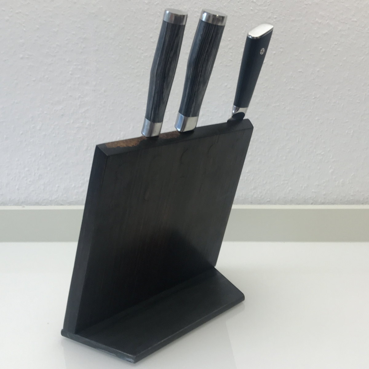 Bis zu 5 Messer. Oberfläche mit Hartwachsöl behandelt. Gummifüße als Schutz.