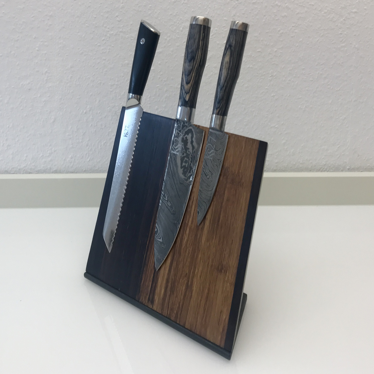 Bis zu 5 Messer. Oberfläche mit Hartwachsöl behandelt. Gummifüße als Schutz.