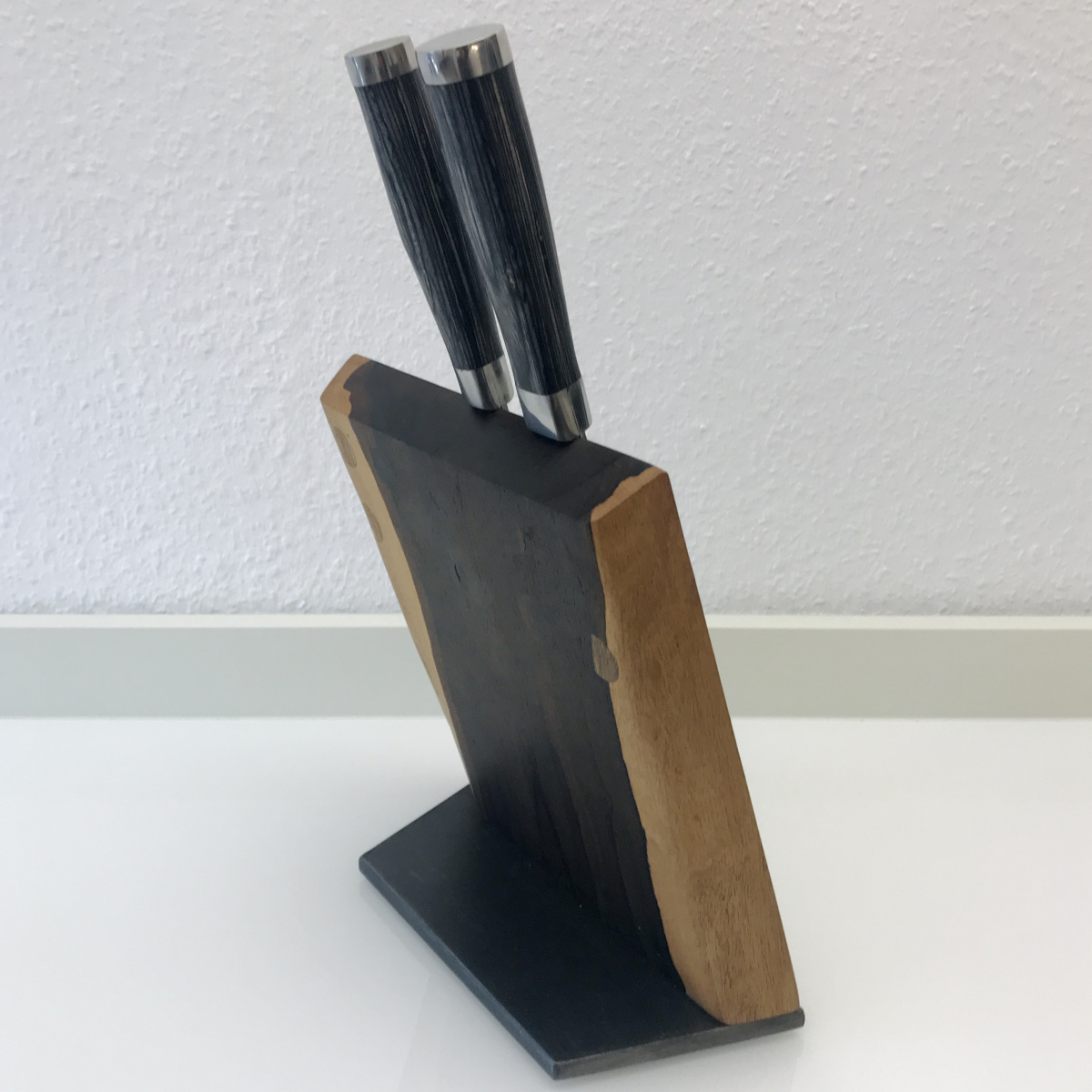 Bis zu 5 Messer. Oberfläche mit Hartwachsöl behandelt. Gummifüße als Schutz.